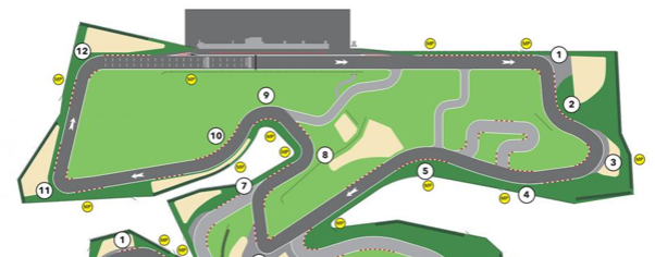 19. At this stage we will be running the West circuit - this circuit uses the main straight with a shortcut on the International circuit for a 3.4 km lap.