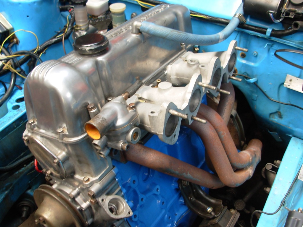 Another quick up date, yes things are still moving along, with the body work taking longer than expected, Zack the beater is also doing another mates hotrod and building his Gemini rally car so one day a fortnight is about all I get him for. Most of the bodywork is done except for a hard to see dent in the bottom of the drivers door and the back panel under the bumper which is a real mess. One good thing is that I pulled out the fuel tank so he could get access to the rear panel and found 20l's of genuine dark green, high lead 2001 Avgas, not much good for anything with an engine I know, but I was thinking of making it into aftershave, drop me a PM if you want to smell like a real man, trust me the ladies love it.... I've also been busy building the new L20 for my 1600, which has been a real charicter building exercise, but is together and in the car. If you like L series engine, and lets face it who doesn't, you might like the head I've fitted, It's been 'downdrafted' ie the inlet ports have been welded up and raised about 10mm and now angle down ono the top of the valves and a new inlet manifold was cast up to suit. Around 10-12 were built by a guy called John Brookfeild who was also involved with Repco Brabham, Bob Jane racing and the Phil Irvine Holden heads. Hopefully we'll have it on the dyno next week to see if it's any good..... There are several other way's of doing it that I've seen, and might, if it works, be worth trying it on an L6... Anyway back to the Zee, I've finalised the engine spec and hope will start on it real soon, I've got to get the clutch and balancer before to much longer, then we will be under way. I've now got the throttle bodies, manifold and a Motec M48 to run the whole shebang, just got to get the new fuel pump's, surge tank and smaller injectors and the fuel side will be ready to go. So it is coming together...... Photo's....the L4 head with gaskit to get an idea of what I was on about, and the fancy manifold and the third is typically what we were dealing with! $100's worth of Helicoils in this baby!! stay away from old race engines!!