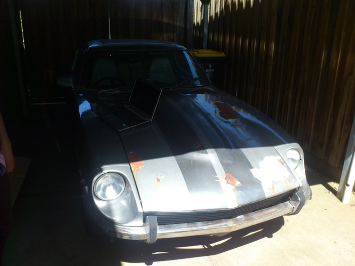 So yesterday I bought myself a very cheap project car, a 1976 260z 2+2. After fiddling with the motor, I got it to start and drive around the block, which took one worry off my chest. The car seems to be painted multiple times....without having the old paint sanded off..... :-\ and there seems to be many rust spots all over the car and a broken windscreen. The interior needs a new floor plan, two front seats need replacing (or upholstery), back seats are fine (just cleaning), new door trims + roof trim and the dash has a few cracks. I have not yet "completely inspected" the car, so there may be more issues, however my main concern at this time is the interior and the rust spots.
