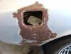 23. I dont know its technical name but I need to stick it back on. My car was attacked by the back of a Patrol ute and it came off second best. I have bashed the panel into some sort of shape, but the filler panel thingy was torn 90% off in the attack! Now without access to a spot welder what would be the best way to attach this part. I was thinking of bonding it firstly with Sikaflex and then drilling some small holes in the outer skin and tacking with a MIG through the holes? My panel beating history is this! So any advice would be appreciated.