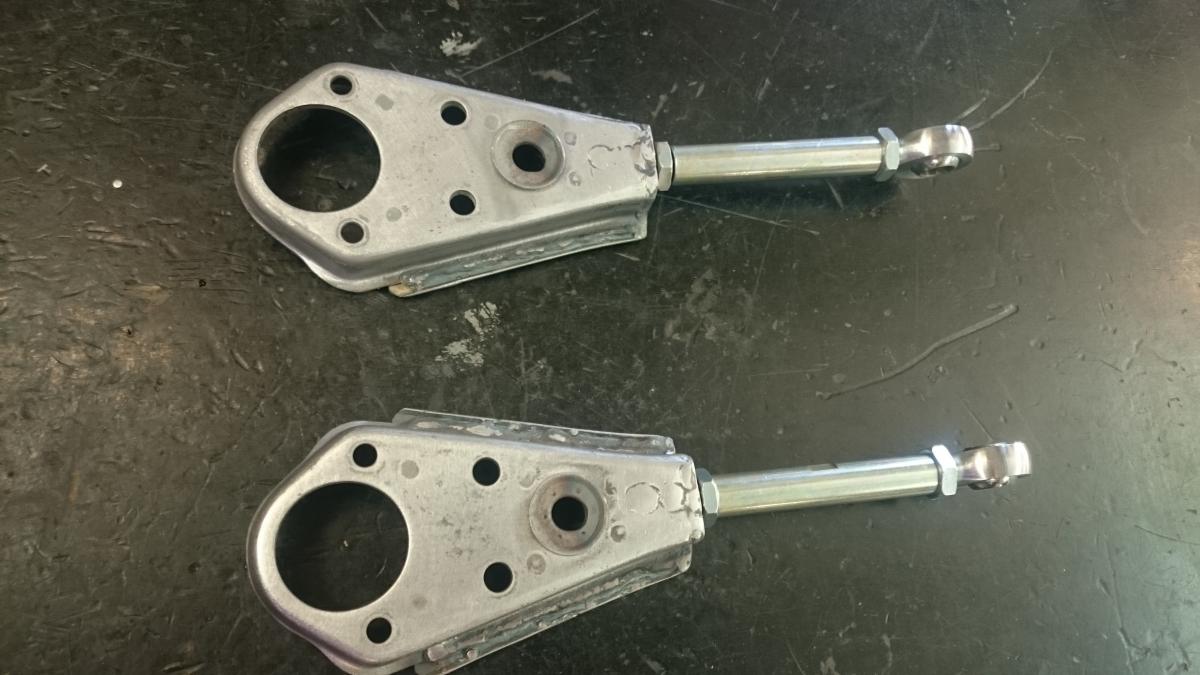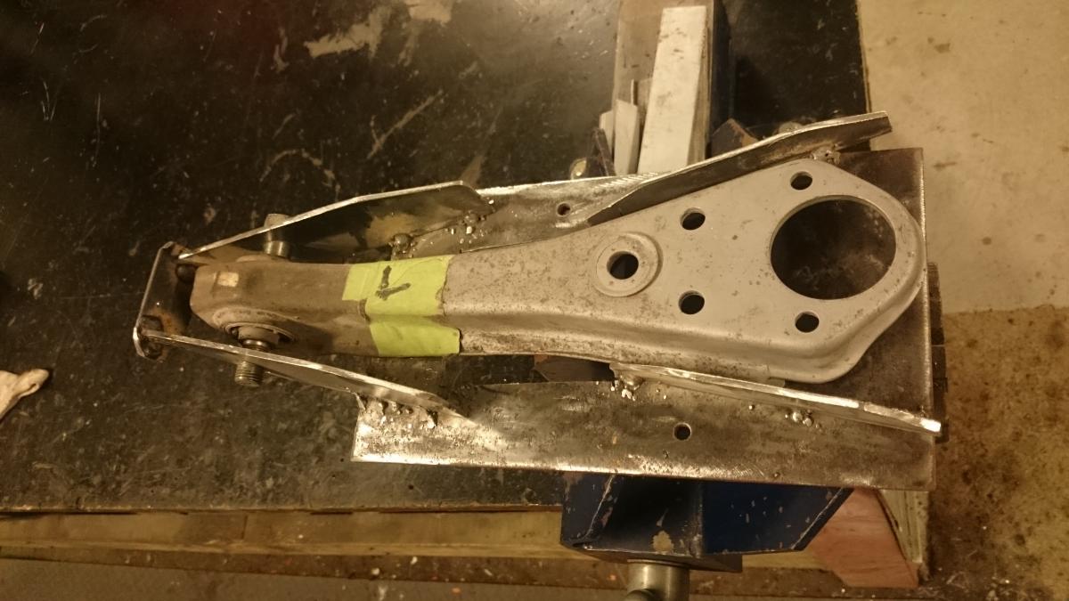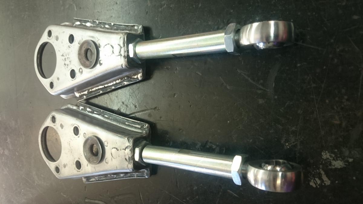The parts arrive from the UK the other day and spent half of the day cutting, grinding and tig welding the pieces back together to make a set of adjustable on car lower control arms. This is my first real attempt of tig welding and I am quite impressed with the results. Alot cleaner than mig and very controllable. I will send them off to the powder coaters tomorrow. The under side of the arm and rear were replaced with a lot thicker guage of steel than the original, and the gig that I made worked a treat. Just waiting for a few more new bits to turn up before the install.