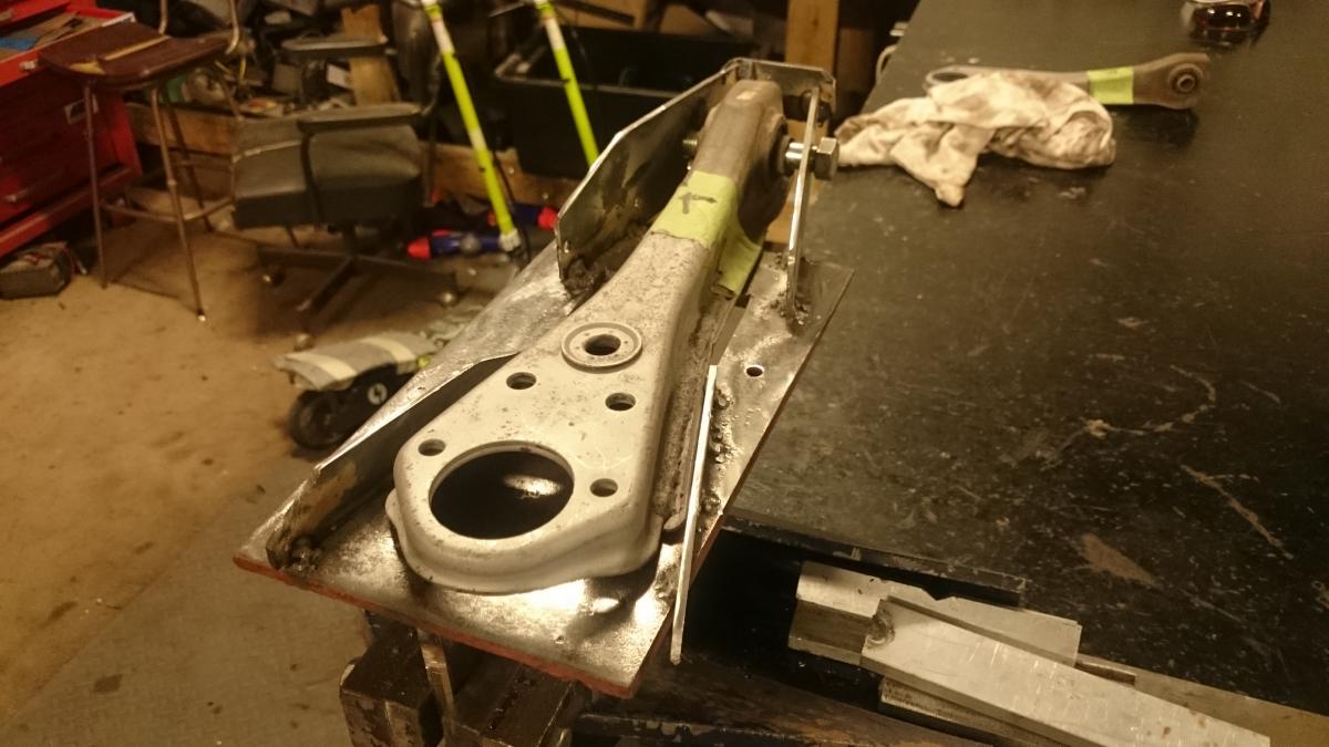 It is time to make the car handle a bit better now as I have a lot of power pushing the front around. I have purchased a set of adjustable front tension bars from sw motor sport and they are a lot larger in diameter to the z bars. I am currently in the process of modifying a set of front lower control arms from my donor z while still enjoying driving the beast. I made a jig to hold the arms in place while I cut and join an adjustable thread and rose joint to them like the TTT units you can buy. The parts should arrive later this week, more photos to be posted upon progress. I am always wanting to refine this car into something awesome and the shed time is therapy.