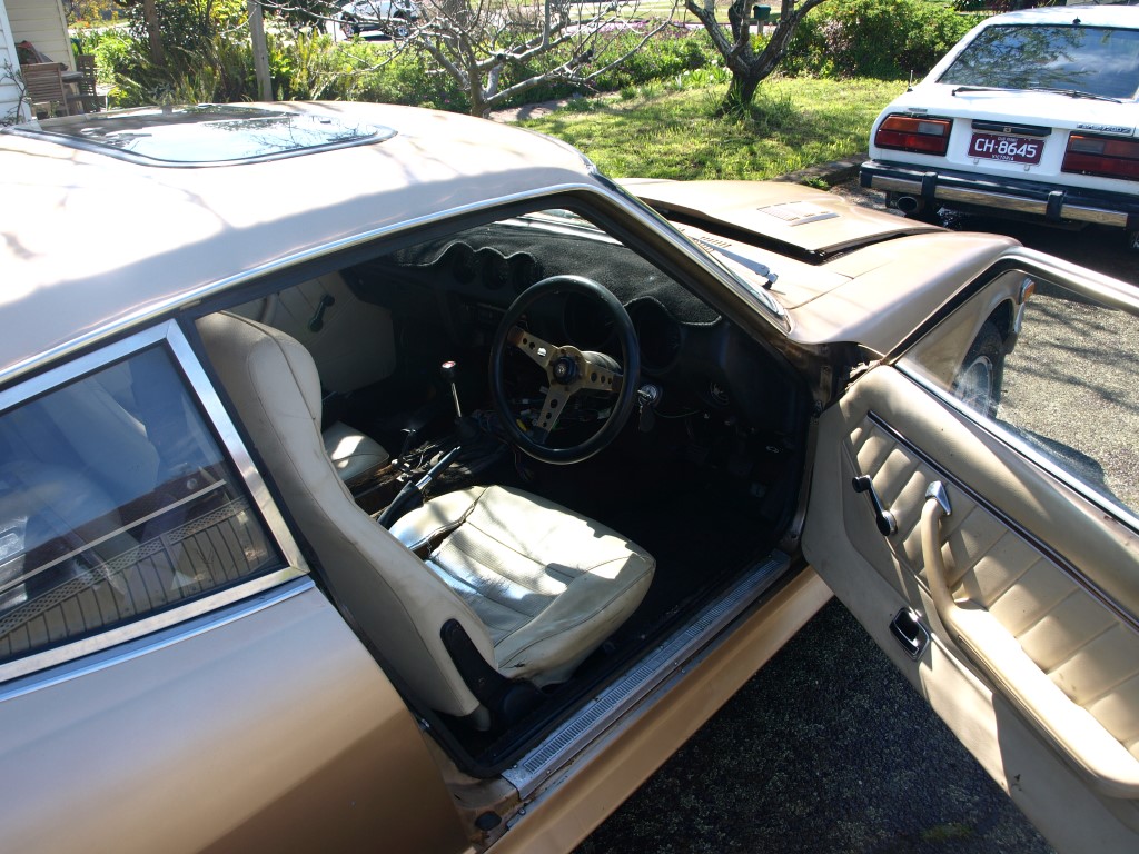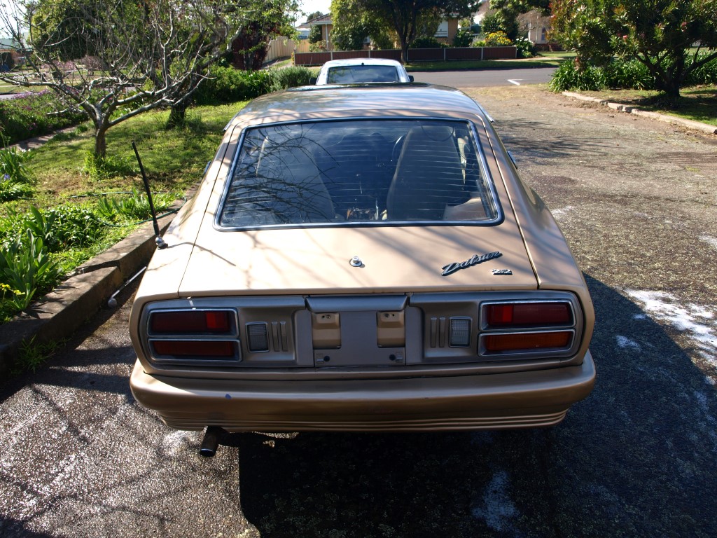 Yeah everyone finds barn finds, well this was in a chicken coop. Covered in dust. I last saw this ten years ago and decided to buy it two months ago. Now I am not so sure however journey so far. Ungclog fuel lines with the varnish ketone of 10 year stale petrol that stinks like crap. Blow out fuel lines. Flush out fuel tank. Chuck out filter and dissemble fuel pump clean wash and assemble. $12.00 Remove Hitachi SU types clean wash fit new needle seat kits $44 each re assemble. $88.00 Fit new BP6ÊS plugs after compression check $54.00 Second hand set of plug leads ex 280ZX New points and adjusted $9.50 Dizzy cap and Rotor $44.00 ---------------------------------------------- Start and run engine. Flushing oil $19.00 New coopers filter 5 l GTX $25.00 Stop engine and fix water leaks. New thermostat and second hand housing $35.00 Lower water housing drill out snapped bolt and refit $12.00 New rubber hose to water heater. Flush out water jackets and fill with coolant (green) Run and adjust idle. ------------------------------------------------- Swap over rusted out rear exhaust system drill out two broken studs retap and fit extractors off parts car and new exhaust system comprising two new mufflers front and rear from parts car $400 out of $1000 Pressure was under floor fishoilene proof coat. ------------------------------------------------------ Suspension Replace Lower ball joints BJ95 both sides $150.00 Replaced both Tie rod ends both sides and new boots $150.00 Removed ZX Rotor on one side and some other smaller 4 cylinder rotor and worn out pads down to metal. FIT and GREASE NEW wheel bearings and seals these were fitted on the hubs from parts car and cost $130.00 plus cost of hubs which I got quoted at $60 each!! That's why you need a parts car. Fit New RDA rotors. $130.00 Fit new brakes hoses fronts $50.00 New DB86 pads $60.00 Caliper Kit and rubber seals and clips $65.00 New air filter NOS $40 New slave cylinder and rubber flexible hose $50.00 Linish rear brake drums $50.00 Refit and adjust brake shoes and hand brake. need to bleed front brakes and take for wheel alignment.. WIP Fix electric gauges either with parts car or by sourcing electrical problem. Tidy up interior Parts car seats and backs ok front seat bottoms worn out. Fit my parts car centre console and decide which NOS datto radio to refit. car has sun roof for some reason and a full BENDIGO SKIRT KIT (Harrop?) I have washed, treated and buffed the OEM wheels from my parts car so that's the other protion of the $1000 I spent on the parts car. Just fitted and balanced two new 185x65x14 fronts (Intensas) $150.00 Full wheel alignment $66.00 It has back 215x65xR14 Intensas in VGC. There were some other 6.5x14xCSA mags with recaps which have been removed Car has 1 near unused and polished oem spare and a second spare in cover held down by tie downs. 4 spares on ebay at $400 you get 6 OEM NISSAN Tool kit. Full set of Z hub caps and two spare (check out asking price of those (6x$25=$150.00) There are also some 6.5x14 CSA horrible gold painted mags with 215P recaps radials if you must have them Free.. The good thing about car apart from a fleck of rust on front and one door I cant see any cancer repaired cancer or any of the normal corrosion that gets into these cars when left outside.. But my wife says I stink like a paint factory and Im not that impressed with the car now I have got it going.. SO if you want to finish a project make me offer or a swapper.. Looking for offers over $5000 includes parts car which has pretty well been gutted out but still has diff struts fuel tank glass