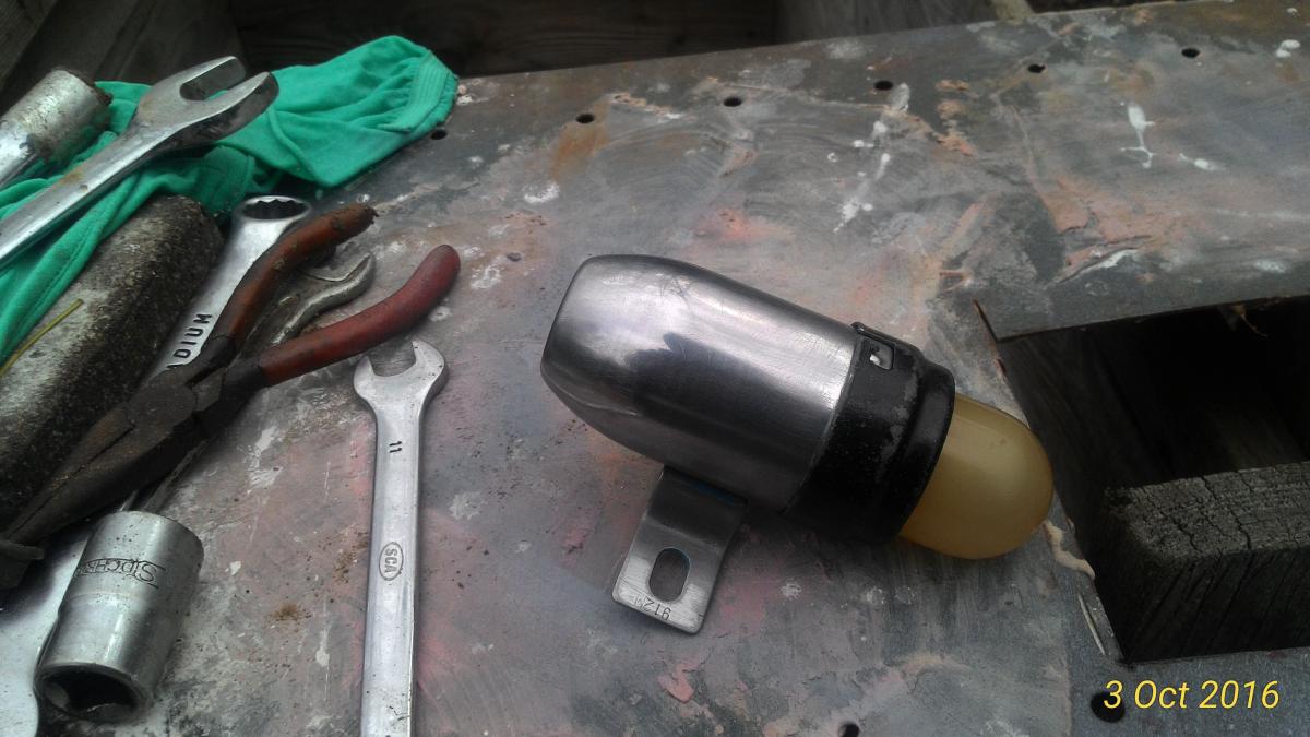 Used speed nuts across top, sides and bottom and then a screws through them. Bit tricky to do up the bottom side. I would probably recommend using some sort of clip arrangement instead though to make it easier to remove. Bent up a piece of pipe the same diameter as the breather and welded to the top of the box to plumb the crankcase and keep it as legal as possible.
