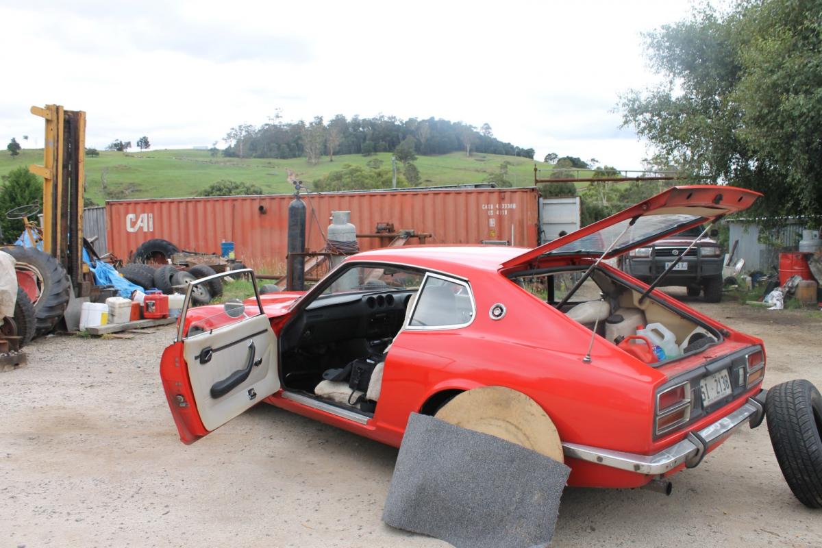 6. Im Joel, hailing from Hobart. Thought I'd best introduce myself finally, have posted a few posts, but want to become one of the family so to speak. Im also learning a lot as i go, so if i say something stupid or miss something silly, let me know please So, about 15 years ago while in college, when I lived up on the North West coast (Devonport), a few of us went to see my friends dads car. I had no idea what a Z was at that stage, saw this thing and thought - That would be awesome! Anyway, skip forward a decade or so, friends come and go, I always thought about Zeds, but was never really in the position to own one... In recent years I got back in touch with my old school buddy - we were all pretty close back then, so it was nice to rekindle an old friendship. After an unfortunate event (my old and new again friends father passed away ), we were chatting over dinner one night, and she remembers a conversation from 15 years previous - "Do you remember when you first saw the zed, saying if it was ever for sale, to give you a call?" "yesss..." "You still interested?" "Yes?" (brain just fried) "cool!" "&*^$*@" and here we are This is a veeery slow project so bare with me (my partner and I also just bought a 22 foot huon pine boat, so add that to my partners ke38 corolla we just restored plus looking for property to buy (first home), my partner just finishing her Masters and starting work, we have a bit on our plate..) Following are some pictures. The few hours driving it home, we realised the main petrol breather was cracked and had to fix that, at 2pm on a saturday at a sleeeeepy country town, then we hit a slice of metal something on the road and wrecked a brand new tyre (literally less than 200km on it), which lead to meeting this old guy who had some really rare spec XY falcon - after we realised the spare was basically rusted into the spare wheel cavity, got stopped by a bunch of cows, and may have stopped at a winery or two.. Currently: trying to figure out fuel issues :- - i rebuilt the carbs as they were a bit leaky (i think i got two different jets though, one seems to richen twice as quick as the other when i turn each flat - will have to investigate that). - fixed a manifold leak - i think my fuel pump is screwed (in one of the pics, it seems newer, and someone has hacked a couple of the screws so i cant pull it apart easily) - i figure they are only meant to have a one way valve? well, mine goes both ways and im having issues getting fuel to the float bowls - it may be a slight line blockage though. Ill see if the electronic pump im putting in will help. - I also added a regulator, as after rebuilding carbs I was finding they were flooding, so figured getting too much pressure through the lines, whihc seemed to sort that. its had a bit of work done in the past - rust removed and resprayed (Mitsubishi passion red so the can says), and the interior (door cards and seats) are far worse than the pics show.