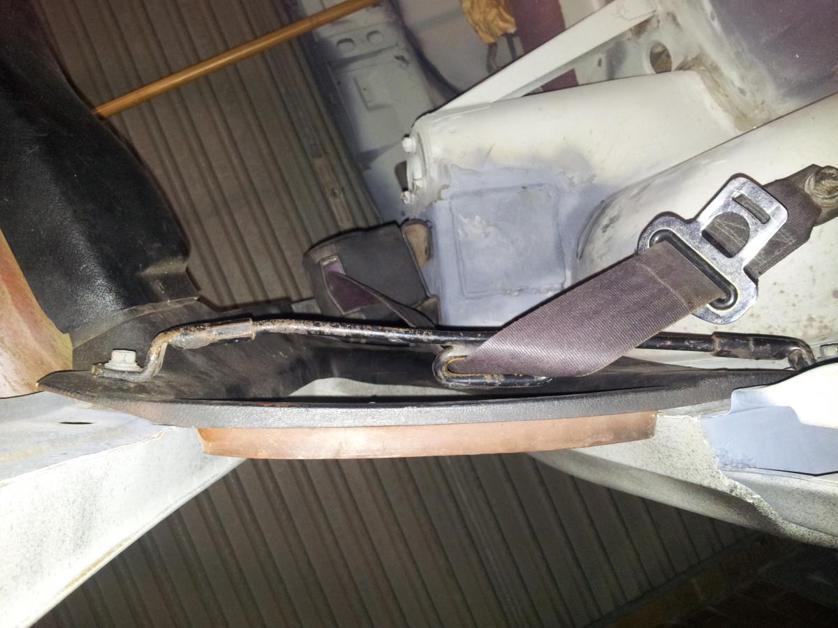 Well I have taken some pics and the description of the set up is the retractable unit is bolted to the top of the rear strut on a bracket. The belt is fed through loop in a metal bracket that is bolted to the roof and under the side window. Then it is secured to the floor behind the seat. To fasten the belt it is drawn across the torso and fastened to a stork that is bolted to the transmission tunnel.