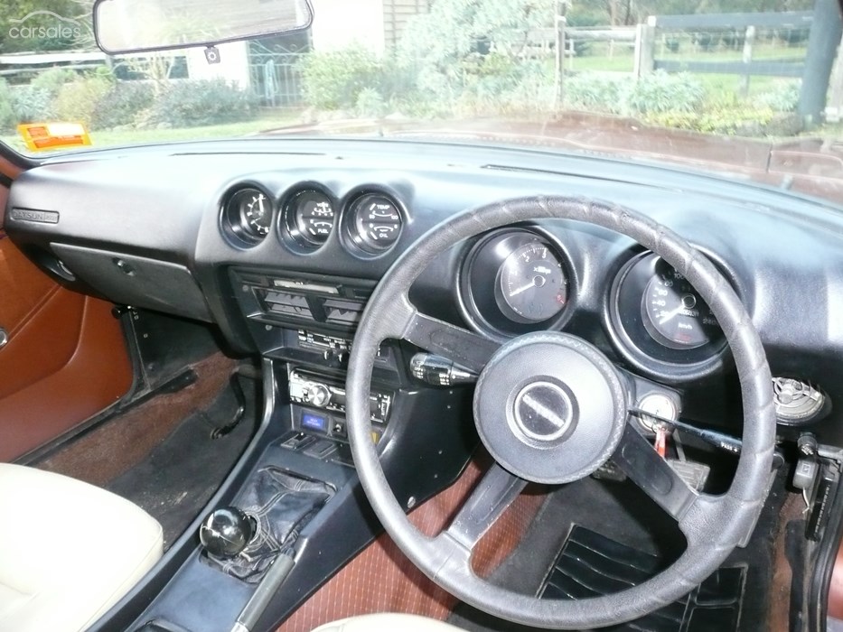 Seller's CommentDatsun 260Z 1976 2 seater with Chev 350 reconditioned engine and Chev Camaro 5 speed manual gearbox. Car is in is in original condition inside and out. Body is rust free and straight. Total weight increase is only about 70kG and because engine is set back against the firewall the centre of gravity of the car is now further back and lower than the standard Datsun. This results in a more stable and better handling car. The standard Datsun solid front discs have been replaced with vented discs (see photo), with late model vacuum booster which gives excellent braking. The engine was rebuilt several years ago (see photos) but the car has been in storage since 2003. The engine has been bored .030” but is otherwise standard with 76cc heads and 4 bolt main bearings. It has had only a few hours running since the rebuild and is not yet run in. The horsepower and torque figures speak for themselves to indicate the performance of the car, when compared to the standard Datsun specs. Carburettor is Quadrajet mounted on Edelbrock manifold. Extractors are custom built to suit. I need the space in my garage and it is time to find a new home for the car. Price is offered as is, which is currently unregistered, but it has an engineers certificate and could be purchased at additional cost with 12 months registration and roadworthy, as an option.