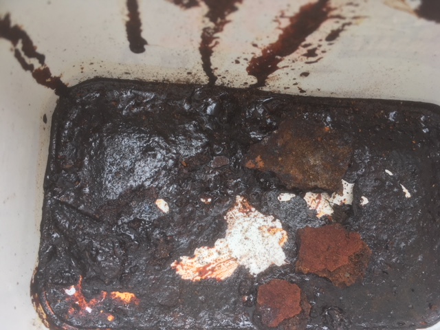 I also read that caustic soda in hot water breaks down this substance at a molecular level. I also read that the mechanical breakdown of the really hard material in the bottom of the tank could be achieved by placing old chain and off cuts of steel and old bolts into the tank and shacking it about. What I found was that there was a thick layer of black to orange material in the bottom of the tank subsequently blocking the fuel pickup pipe.