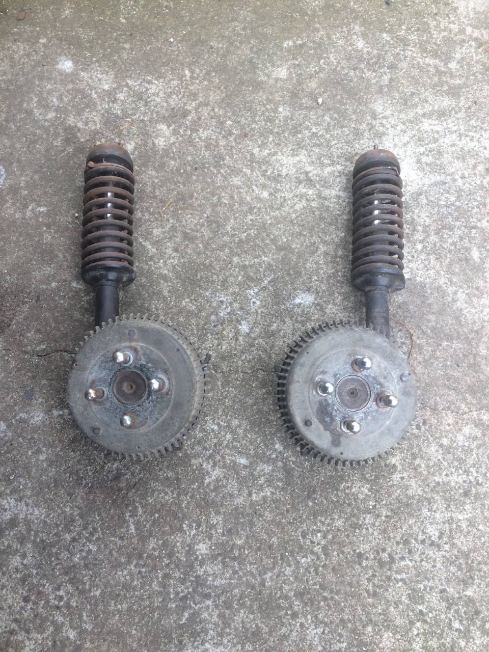 i have the complete front and rear ends off a genuine Japanese 73' 240z up for sale. i have converted to a different set up and no longer need any of the parts that made it rolling. front: struts, hubs, lower control arms, brakes, engine k frame, steering rack, sway bar, toe arms rear: struts, hubs, lower control arms, brakes, differential, half shafts, moustache bar, other mounting brackets. got the jelly been style wheels that came with it too all the parts are showing their age and would need a clean up and new bushes but are structurally straight and sound, with the exception of one front toe arm which is just slightly bent. I'm not sure what all these parts are worth, I'm guessing a couple of hundred dollars but have a look at the photos and either make an offer or comment a rough estimate. im not wanting big bucks just a genuine offer for what they are and the condition they are in. when the weather clears up i can bring all the parts out for some more complete photos. located Geelong, Vic.