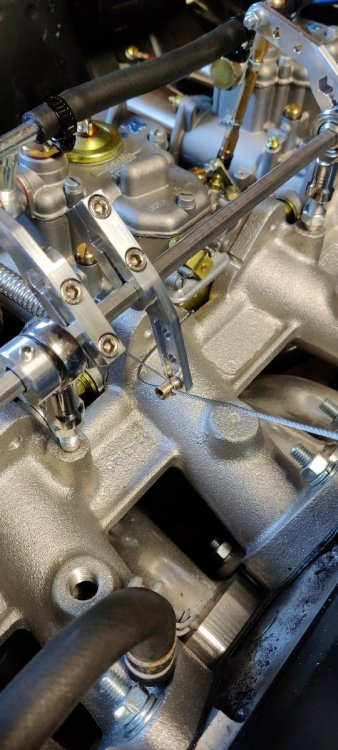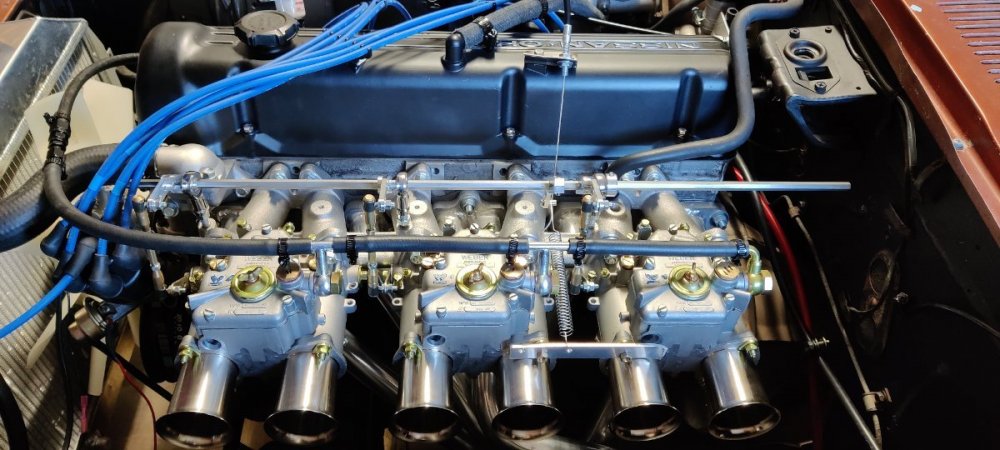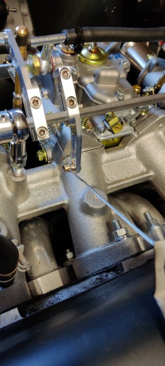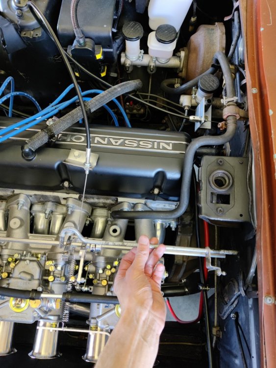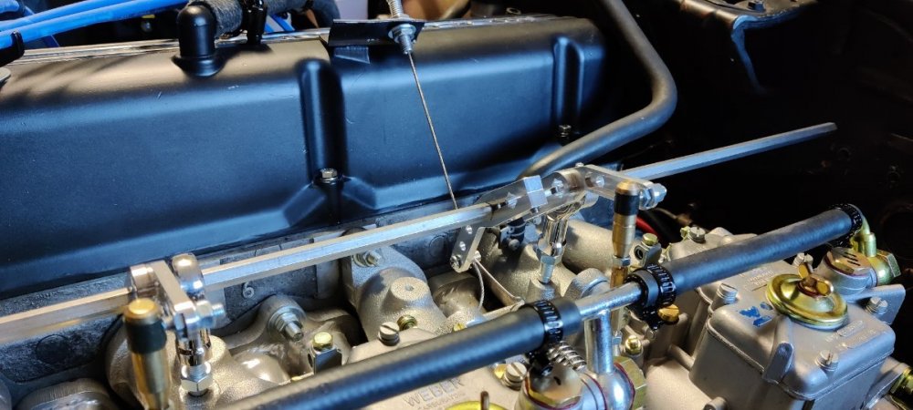 Well, I've finally gone and got some new carbs as per pretty much everyone's recomendation. I ended up going with the Weber 45 DCOE carb / manifold / linkage kit from Recarb and hopefully will be able to get them running tomorrow. Just wondering - does anyone have a solid way they've attached a throttle cable to these carbs? The linkage uses a hex rod, so I can't find a pulley that mounts straight to that hex rod (like how the Kameari / Haradi set up works), and I'm not sure whether I want to be attaching a pulley / bell crank to the centre carb that then somehow actuates the other carbs (seems like that would be inviting unevenness actuating one carb first instead of actuating the whole hex rod from a seperate arm?), or whether there's some other option I'm missing?