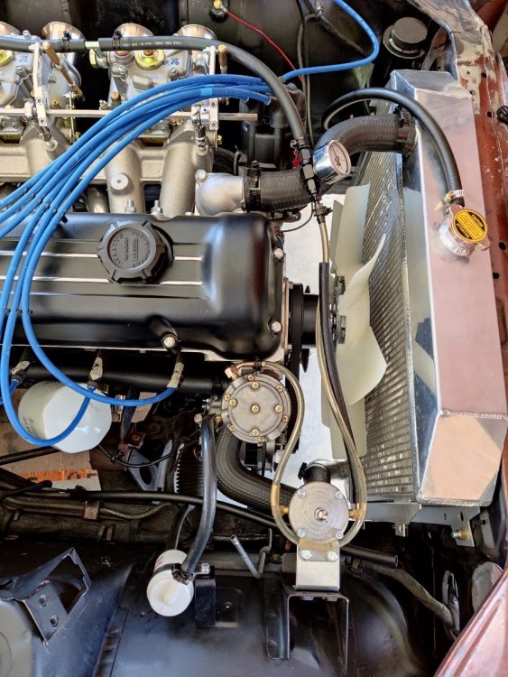 So it's been a while and I've done a handful of things, and thought I'd update while trying to work out what to do next. I was hoping the work I had done would make a big difference but I don't think that's quite the case, which is honestly a bit of a bummer but not surprising. I've also cleaned and painted a bunch of parts to try and generally freshen up the engine bay, although not to factory standard or style by a long stretch (sorry!). Firstly I sent off the distributor for testing and overhaul. It came back no fault found but with the vacuum mechanism replaced. I really just wanted peace of mind and was happy to pay to make sure everything was working properly and setting my timing accurately was relatively possible. I also replaced the spark plug leads while I was at it. I also decided I wanted to make the whole return line system work, but my fuel rail was pretty bent. Instead of just sourcing another one, for some reason I decided to make my own. I bought all the AN fittings, tubing and some of the tooling ( I had access to some tools at work which helped). The result is okay, but after all is said and done I'd probably prefer an original unit perhaps just cleaned and painted to suit. The anodized aluminum line I used easily cracks when bent, and until I fabricate more brackets the whole piece is a bit flimsy almost? It does work and I made sure to leak test the whole thing before fitting it to the car and risking fuel leaking on to the exhaust. It was kind of fun do something new and I feel like I got my head around AN fittings and general line fabrication, so that's something. I'm sure everyone has already realised this, but using proper, well-made tools is an absolute treat compared to using cheap generic / multi-use stuff. Bending and flaring lines with decent tools was actually satisfying! Next up I wanted to pull apart the ol' flat tops to make sure at the least that nothing was stuck or clogged up. Can't say I enjoyed pulling them off the car, but pulling them apart on the bench was fun. I checked the filters for debris, made sure all the orifices were clear by spraying carb cleaner everywhere and checked the power valves weren't blocked. I adjusted the floats to the specs that came with the gasket kit and re-assembled everything. I also "installed" a radiator overflow can - just a couple of clamps bolted to rivnuts off the radiator for now, sitting where the air flow vent things should probably be. I also figured I should re-install an electric pump to push fuel through the return line like from factory. Because I'd converted to an internally regulated alternator, I ended up also installing an inertia switch behind the center console, to make sure the pump, if connected, would shut off in the event of a collision. If I want to turn the pump off and kill all chance off it running I can also now just easily unplug the wires at the inertia switch. I'm wondering as well if I should be using a ~4 PSI pump instead of whatever the previous owner found at supercheap... With all this done I fired her up, and fuel started poring out of the carb overflow vents. I connected some hoses to the vents, led them into a bucket and began trying to figure out what I'd done wrong. I eventually ended up whacking the bottom of the carbs, hoping the floats had just become stuck, and somehow that seemed to fix it. I've run it a few times since, trying to dial in a rough tune, but can no longer get the car to idle under 1500rpms. I remember it idling lower before I pulled off the carbs, so I must have done something, but don't have a clue what. Last weekend I went around the engine bay and tightened all the screws I'd touched to make sure there were no obvious vacuum leaks, and then ran the car while I had a hose with one end to my ear and the other going around the engine bay trying to find a leak. I couldn't find anything, and now am at a loss as to why the car won't idle below 1500 no matter what I do. The slow idle speed adjustment screw does borderline nothing, and adjusting the timing, fast idle and balance only increases the rpms. If I adjust too far in the wrong direction fuel starts slowly leaking out of the front carb as well. Because I can't figure this out I haven't run it for more than maybe 10 minutes, so I don't know if my return line has helped my suspected fuel line overheating either. It also smokes a lot all of the time (blue-ish mostly, sometimes black when revving) and the exhaust has such a strong smell (although only sometimes despite not changing much between runs?). I was hoping to be able to test drive around the neighborhood by now, but don't feel confident driving it around until it seems to be running better. At this point I'm pretty tempted to take the car to a local 'old school' mechanic and get a professional opinion - if the rings are cracked or the head gasket needs replacing I don't think I'd ever be able to confidently diagnose that myself. I've got valve stem seals, a sump gasket and wheels bearings I'd be happy to pay a mechanic to install as well if they think they're necessary. I was also toying with the idea of either installing the other set of flat tops I have to see if that helps, or going a bit over the top and just buying the ztherapy round top conversion kit. I've just landed a new job so I won't have much spare time for the foreseeable future, so the whole 'throw money at the problem' approach is more attractive than ever. If anyone has any other ideas I'm again all ears! Thanks for reading!