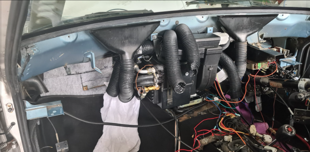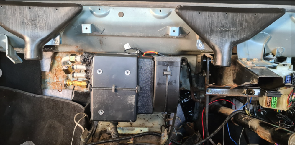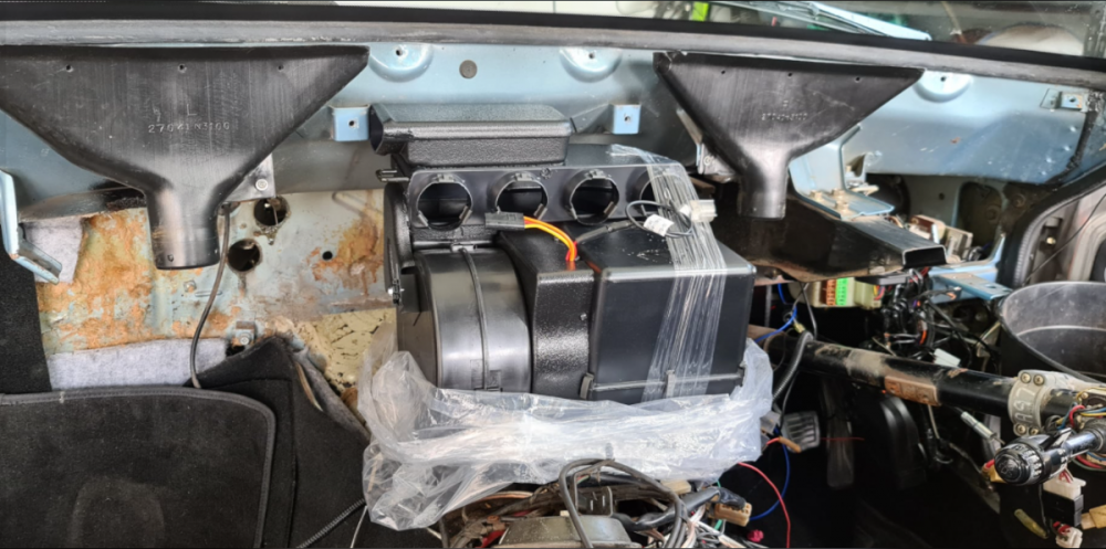 Hi Guys, I just recently completed installing my new AC/Heater/Defrost kit and thought I wouldshare my experience with the group. (Sorry in advance- long post) I am no mechanic, electrician or an a/c specialist of the likes but in saying so, I am always willing to give everything a go and get my hands dirty. I got my car fully road registered (after it being off the road for more than 10 years) in late August and only drove weekends. October long weekend was when it hit me, the heat that is. It was so hot that it go me sweating into my seat and just made me it want to just get home quickly rather than going for the spirited drive lol. I started researching and calling a few places in hopes to get it done before summer, but many places were either booked out until next year or where far too pricey (top price quoted for unseen was $6000). :/ I called up vintage air in and they quoted me the universal gen II kit (AC/Heater/Defrost) for $2500 exc shipping. Was tempted to go down this route, but everything was generic, the compressor bracket needed be frabicated to fit and had to replace the original control panel which I didnt want to do. So I go into contact with Auto AC in the states, they had the complete kit (AC/Heater/Defrost) that was "designed" to work with Datsun 240z/260z and the original control panel. It also comes with all lines, hoses, wiring, brackets and step by step instructions. They also assured me that this was designed for RHD drive Z's too. So as you know it, this is the option i took. https://autoacsolutions.com/products/1974-1975-1976-datsun-260z-add-on-air-conditioning-with-integrated-controls-for-rhd-right-hand-drive-vehicles/ After converting it to AUD+ Shipping, it was roughly $2550. Delivered by FEDEX in 1 week. Ordered on Monday, Arrived following Monday. Beware of the TAX and import fees. That was around $300 or so for me. So now I am at roughly $2850* So the photos are in the order of my progression. By the way, I only had weekends and sometimes only 1 day of the week to work on it as work was picking up and it was coming towards end of the year so, I would say it took me about 3 days in terms of "day" hours to get it done as for the most part, it was deciding on how everything and where everything was going to be placed. There was a lot trial fitment going on. So first few photos were just photos of the contents. Arrived in one big box. Evaporator/Heater Core, Wiring and instructions Compressor, Brackets and belts Condensor The first thing was to drain the coolant, remove the dash and get the old evaporator/heater core and blower motor out. Dashboard and Center Console out Now onto the old evaporator and blower motor Evaporator/Heater Core and blower motor out New Heater/Evaporator core and blower motor Once it was out, I realised how tight this fitment was going to be and I was umming and arring whether I place it on top of the trans tunnel or to the passenger side against the firewall. I couldnt decide just yet so I ended up moving to mounting the compressor bracket and compressor. Instructions, Compressor, Bracket, nuts and bolts Compressor Bracket fitted Compressor and Belt Fitted Next was mounting the condensor. I mocked up some brackets using soft metal then using the mockup I fabricated thicker brackets. Fabricated brackets for the condensor Condensor mounted So now back into the car, (this part took most of my time) a lot of testing fitting with the dashboard on and control panels in, no matter what I did i couldnt seem to get the control panel in to fit properly as it was pushing up against the unit and therefore protruding out of the dashboard. I ended up taking the original control panel apart and by which i meant removing the unessecary metal brackets that made it longer than is required. This got it to fit but only just. This is how it looks without the vents connected at the top and with the ac drain at the bottom connected to the original hose. Once I figured out the placement, i removed it and added sound deadening and insulation Next was connecting the heater hoses. I tried to fit the new heater valve to where the original holes were in the firewall, but it did not fit well as the hoses inside the cabin needed to be routed to the passenger side and even if I still managed to install it, the clutch pedal would touch it every time when pressed. As a result I ended drilling to holes to the left near where the original AC holes were. As for the heater hoses, I ended up going to supercheap auto and bought some hoses that were already pre-shaped and just cutting them to length and then fit. Heater Valve and Heater Hoses (inside cabin to Heater Core) Connecting other end of the heater valve with L shaped heater hoses (goes from heater valve, routed behind engine and fitted to a 90degree brass fitting. Next step was to connect the AC hoses. The kit came with the hoses that had fittings already pre-pressed to the them and with some extra fittings to change the setup. I ended up only using one of the hose that was already pre-pressed and ended up buying different fittings from repco as I required different angles and where the charge ports were located it was facing the fender wall with about an inch of room to allow for charging. Tools used to press the fittings onto hose. Costed $180. I ended up relocating one of the charge ports a little further down and angled towards the engine as opposed to the fender wall. Relocating one of the charge ports as the one that came in the kit, when installed onto the compressor, the port faces the fender wall with only 1 inch of work space (not ideal) so this new one faces the engine instead. See following photo. Connected all the AC hose fittings to the respective parts. Fitted the hoses to the compressor. Condensor hoses fitted. The drier was mounted on the driver side fender wall. Drier Fitted to the driver side fender wall. It came with a binary switch but because I also wanted to activate my dual electric radiat