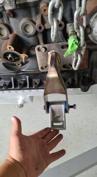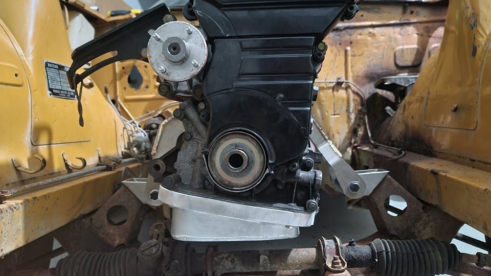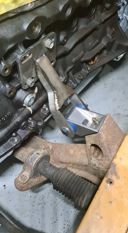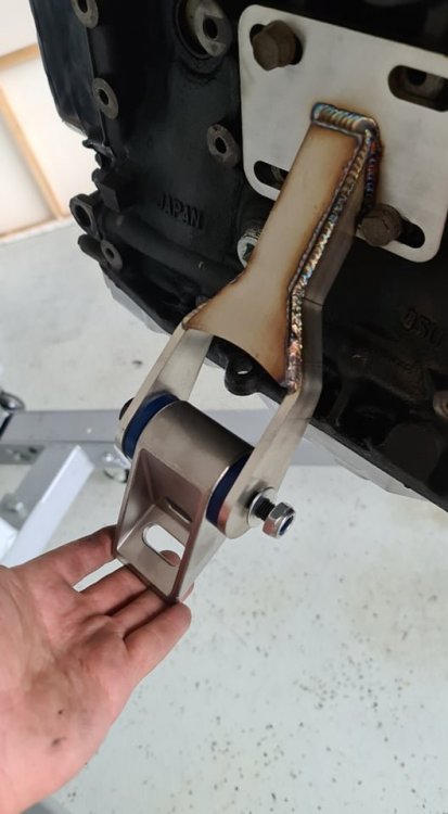 Thanks Scotty! Thats very helpful. I was told that these engine mounts won't pass engineering as it's U shaped and needs to be boxed up on the under side. Once it's out I'll weld on another plate behind it. Also I'll probably need to brave the transmission mounts a little further. Not confident 2 bolts will hold together the new power, but should be simple enough to add extra tabs on the end a have 2 bolts come through from within the cabin into the tunnel. Regarding the gap behind the sump, I'm missing the gusset from transmission to RB block. "Lower brace bracket"