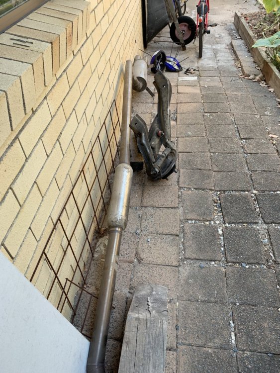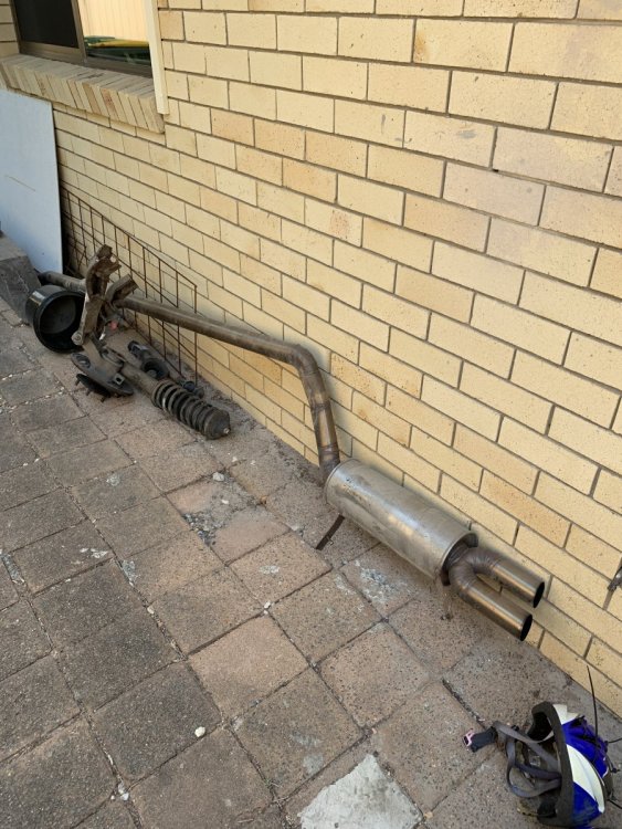 I have a 2.5 inch mild steel exhaust with twin vertical exits. The exhaust has two minor splits in the weld can be easily repairs and sounded great. Petrol tank mold on flares front and rear left rear hub and strut with spring happy to accept any offers.